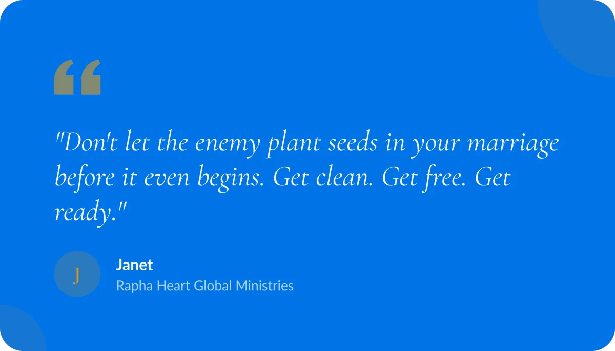 Our sessions cover every dimension of spiritual readiness for your covenant marriage.